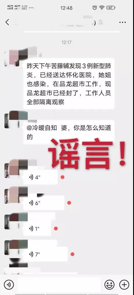 2月15日,沅陵县微信群及朋友圈流传一则消息,称“品龙佳惠工作人员被感染,超市已封”“佳惠确诊3个收银员被感染”。经向县商务局核实,该传言纯属谣言,沅陵佳惠超市各门店均正常营业,且落实了相关疫情防控措施,目前也无超市员工感染新型肺炎。沅陵县委网信办呼吁:疫情当前,每一个人都是战“疫”的一员,抗击疫情,请从不造谣不信谣不传谣开始!对于故意编造谣言扰乱公共秩序者,公安机关将依法打击!请广大网民自觉遵守法律法规,维护网络文明,为坚决打赢疫情防控阻击战营造良好的舆论环境。
