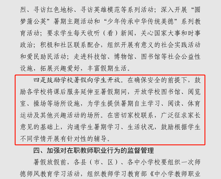 6月16日,河南省安阳市教育局提出各中小学将课后服务延伸至暑假期间。