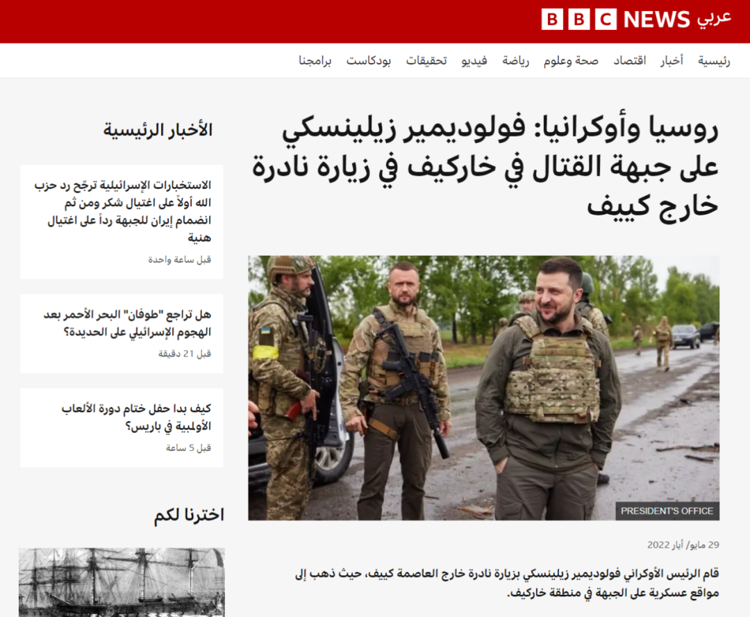 2022年5月29日,BBC报道“泽连斯基罕见地出现在基辅以外区域”时使用的图片与网传图片一致。